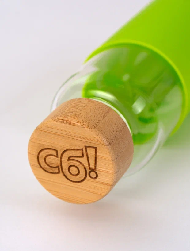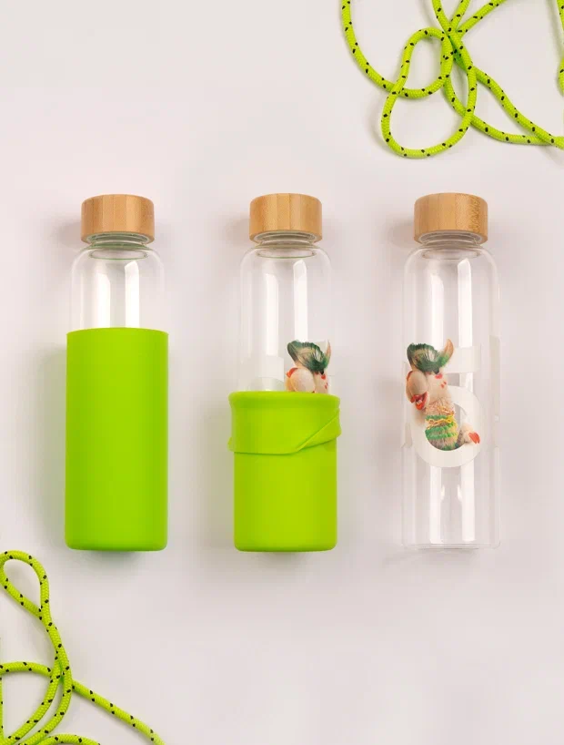 Прочное стекло, крышка из бамбука, силиконовый чехол цвета сочного лайма и альпака Жози! Бери с собой на учебу, в офис или на йогу!