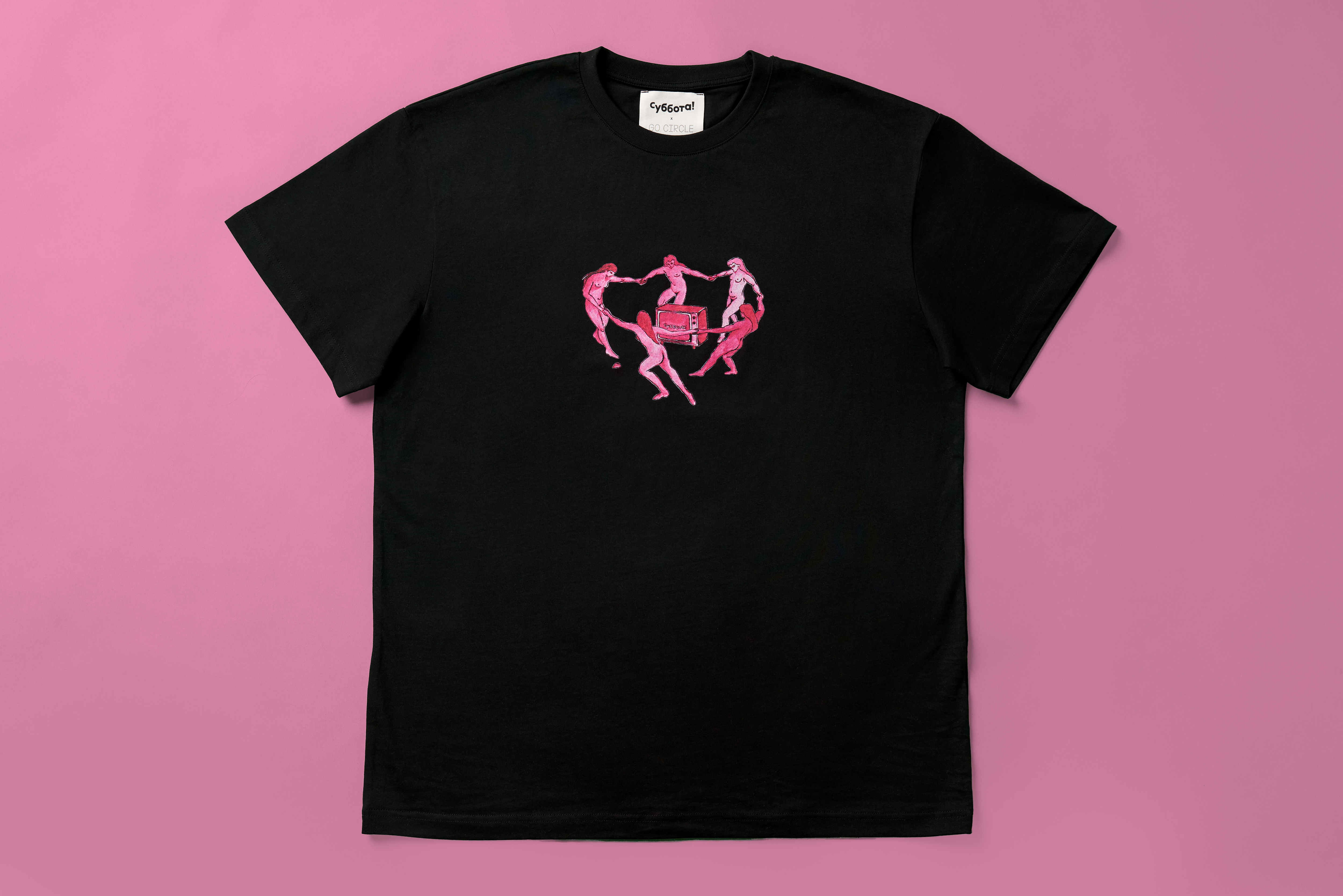 Ироничная футболка, выпущенная к 5-летию телеканала Суббота! в коллаборации с брендом GO CIRCLE.