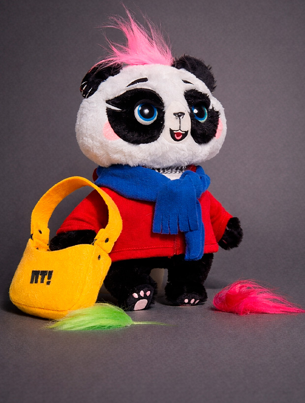 Знакомься! Это та самая панда Фрайди – из телевизора! Пушистый друг вашего ребенка. Телеканал Пятница! – ее дом. Фрайди обожает вкусно поесть и очень любит путешествовать. Вместе с пандой ранний завтрак перед школой станет веселее, а обыкновенная поездка на дачу превратится в настоящее приключение. А еще Фрайди – большая модница! Она и дня не может прожить без смены образа! Три сменные прически разных цветов – уже в наборе! Менять их очень легко: они на магнитах. Дружи с Фрайди! Дружи с Пятницей!.